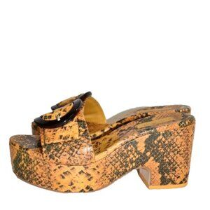 $500 CULT GAIA Cleia Snakeskin Embossed Platform Mule Ochre SANDAL 36.5 (DB16)