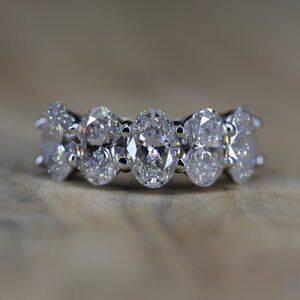 5.00 Carat Oval Lab-Grown Diamond Half Eternity Band 14K White Gold IGI Certifie