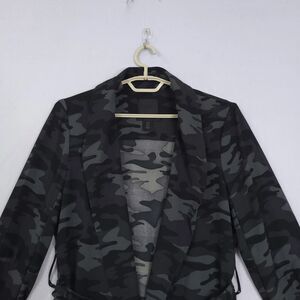 500 Maison Cinqcent Black & Grey Camo Lightweight Belted Trench Jacket Medium