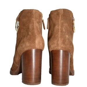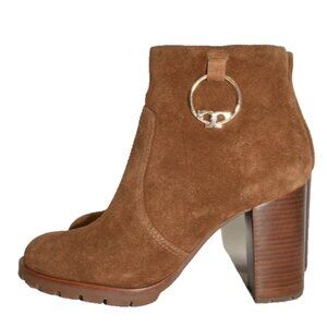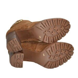 $500 TORY BURCH Sofia Lug Sole Suede Mid-heel Booties LOGO Brown 10.5 (MG24)