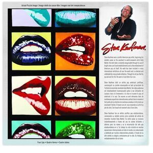 Colorful 500 piece puzzle featuring vibrant pop art by Steve Kaufman. Includes bold red, blue, and black accents.