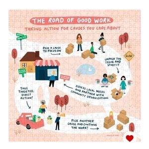 Nip stress in the bud as you piece together this feel-good jigsaw puzzle. Ideal to gift, keep, and collect. "ROAD OF GOOD WORK" comes in a stylish tube with a 12 x 12 reference poster. Once completed, the puzzle will fit perfectly into a 18" W x 18" H Frame (not included), ready to display on your wall. This inspirational puzzle can be completed time and time again—and makes the perfect gift for anyone who needs some encouragement.