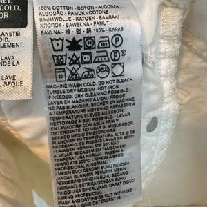 Preowned. Good condition. Discoloration by top button (pictured). Small dot in the crotch area (pictured).