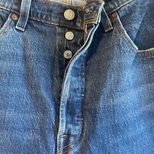 That perfect broken-in look—without putting in the work. This garment was distressed for an authentic vintage-inspired feel and lived-in style. Lightly worn and in new condition. Size W32 L32. 98% Cotton 1% Elastane giving them a slight stretch.