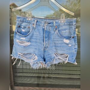 501® Levi's® Original Shorts Distressed Denim Women Sz 28 Button Up Fly