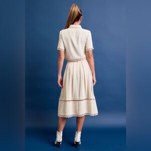Stylish cream two-piece set with intricate detailing. Perfect for any occasion.