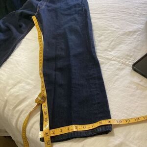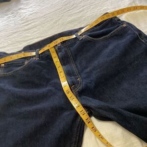 Excellent preowned condition, dark wash, classic 5 pocket, tagged 40/32, see measurements for custom fit.