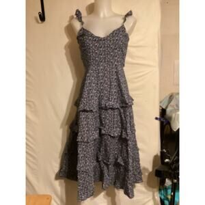 5071 Dress Forum Temecula Dress Navy Floral Sleeveless Tiered Ruffle Midi Small