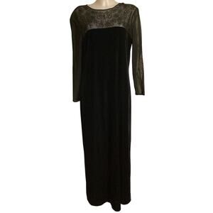 5081 J. R. Nites by Caliendo Formal Black Vintage Velvet 90s Mesh Maxi Dress 16