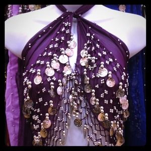Can be worn around hip or as a top. Sheer. Coins are crocheted on. Excellent condition, still new!