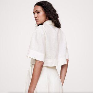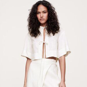 509. BANANA REPUBLIC LINEN TIE-FRONT CROPPED SHIRT Magnolia Ivory $90 NWOT XXS