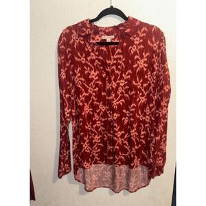 509 Knox Rose Red Boho Print Button-Down Blouse • Long Sleeve Casual Top