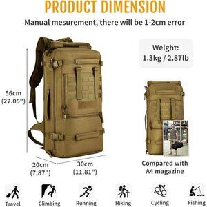 50L Tactical MOLLE Backpack Military Hiking Travel Bag Crossbody Handbag