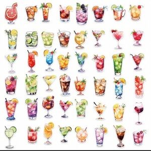 50PCS Cocktail Drinks Stickers Vinyl Aesthetics Stickers For Scrapbooking