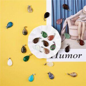 50Pcs Teardrop Stone Pendants Water Drop Healing Crystal Quartz Chakra Gemstone
