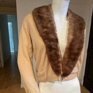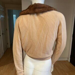 50'S BERNHARD ALTMANN FUR COLLAR CASHMERE CARDIGAN SWEATER SZ S SMALL