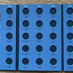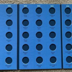 50 State Commemorative Quarters Album. New album in cellophane. No coins included. 9” x 6”. University Games Brand.