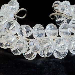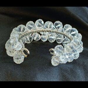 Fantastic bracelet made with 50 hand wrapped Swarovski faceted crystals , incredible sparkle and shine. Perfect for bride, black tie, runway events and more. Excellent condition and sparkle, measures 3” across, 2.5” h 1” thick, adjustable.
