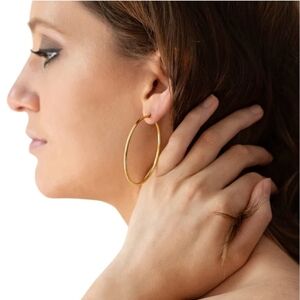 50mm Gold-Plated Sterling Silver Hoop Earrings - Classic Look - Big Discount