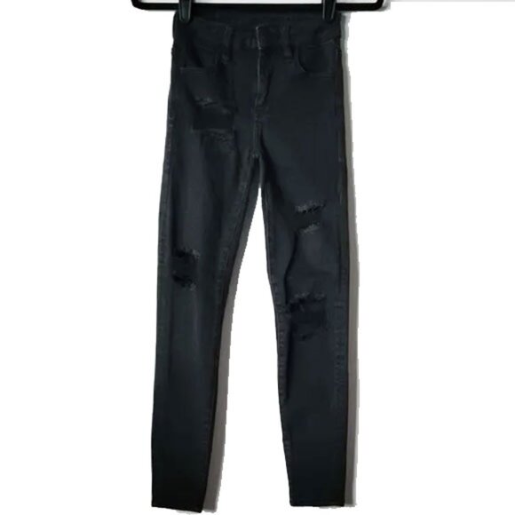 *50off3* American Eagle Outfitters Mid Rise Skinny Jeans 00S Destroyed Black