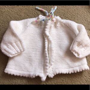 Super cute cream colored Handmade crochet baby sweater. Excellent condition. Size 9-12 months.