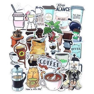 Coffee vinyl waterproof stickers. Perfect to add to your Yeti, Stanley Cup water bottle or add to you computer or phone.