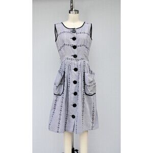 50s 60s Checkered Floral Dress LARGE POCKETS Pleated Pin Up Rockabilly S M