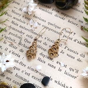 50's BAROQUE SCALLOPED ROPE LATTICE DANGLE EARRINGS