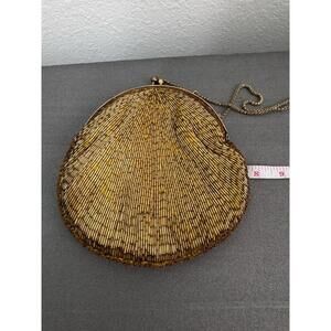 Vintage LaRegale LTD Metallic Gold Beaded Kiss Lock Closure Chain Strap Clutch Purse
