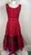 Sleeveless party dress has a red acetate (?) lining with black lace overlay. The circle skirt is finished in black tulle at the hem. Can be worn as is or with a petticoat underneath for more classic 50’s fullness (as shown in first photo. Petticoat not included).