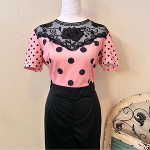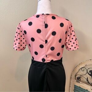 50s Retro Office Siren Pink Polka Dot with Black Mermaid bottom 8/10