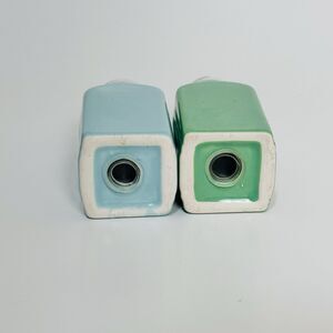 50s Retro Stoneware Salt Pepper Shakers Set MCM Farmhouse Cottage Mint Green