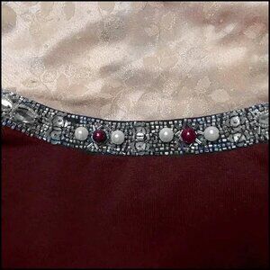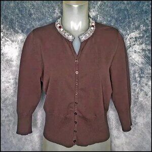 50s Style Beaded Cardigan with Jeweled Neck, VFG 90s Large Size Rockabilly