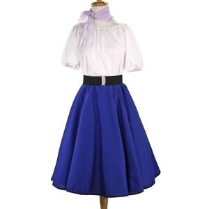 50's Style Blue Full Circle Skirt with Elastic Waist