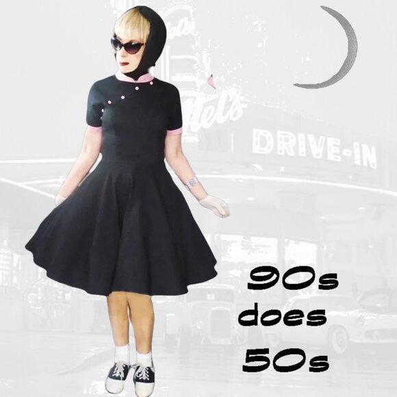 50s Style Dress Fit Flare Volup Full Skirt Rockabilly 90s Vintage