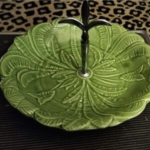 50’s VINTAGECALIFORNIA POTTERY USA 693 12” Serving Dish Green w/ SILVER Handle