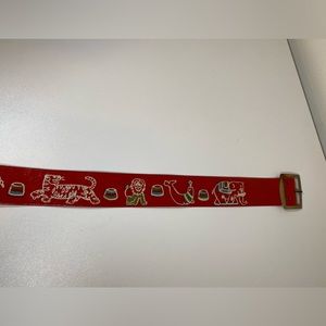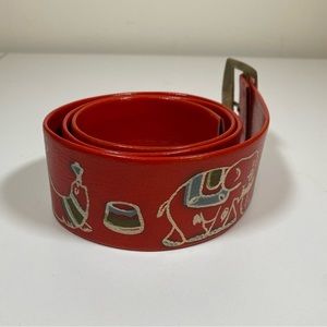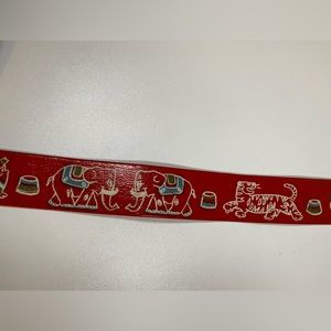 Circus themed vintage 1950's belt with painted elephants tigers lions seals. Red with white blue green.