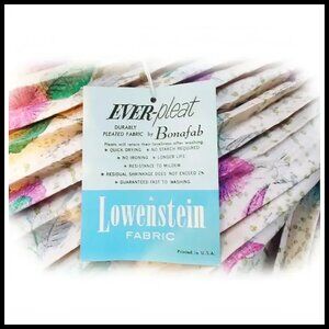 ''Ever-Pleat'' apron keeps its pleats through washings! It also says ''no ironing'' (WHAT?!). The ''Bonafab'' trademark had not been registered yet, so think 50s to early 60s for this. Bonafab was also associated with cotton garments, so this must be cotton, but actual fabric content is not shown. Unused. The atomic floral has metallic gold splatter which was a popular detail from this time. Background is off white. What you cannot see well in the photos is that the ends in the back are trimmed with black. Crisp and amazing. New without tags BUT I'm showing a tag because I have two of these and the tag shown is from other one.