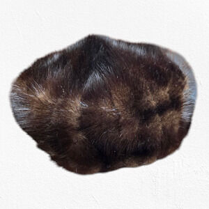 1950s Brown Mink Fur Pillbox Hat Satin Lined