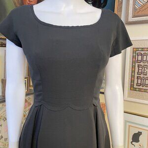 50s Vintage Nathan-Strong by August Black Cap Sleeve Scoop Neck Dress Size SM