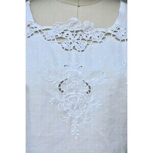 50s White LINEN Embroidered Blouse Eyelet Blouse Peasant Blouse Italian S