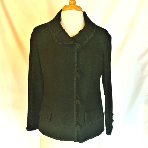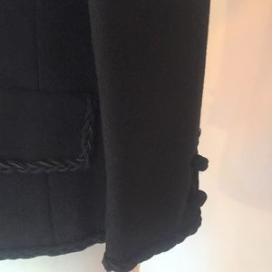 Stunning and timeless black wool Yves Saint Laurent Blazer with braided trim accents and large braided buttons. This is a beautiful piece from the 1950's