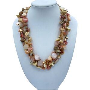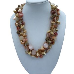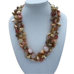50s collar necklace multi strand Vintage mother of Pearl shell beads Earth tones