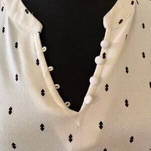 50th Street Petite White Blouse with Black Dots & Button Detail – Size Petite M