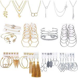 51 PCS Gold Silver Jewelry Set with 6 PCS Necklace,9 PCS Bracelet,36 PCS…