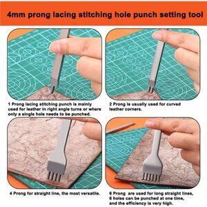 [4mm Stitching Chisel] Made of white steel, the leather stitching punch is durable and useful leather craft tool. Polished and smooth handle is comfortable to hold, sharp rhombus tooth is helpful to punch quickly and effortlessly.