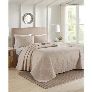Unlike traditional coverlets or quilts, this bedspread is oversized to drape better and features 100 percent hypoallergenic polyester filling. Made from ultra-soft microfiber, this oversized cover up is machine washable for easy care and adds a chic transitional allure to your bedroom.