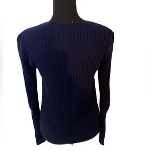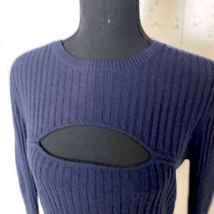 #510 FRAME DENIM Navy Cutout Ribbed Sweater