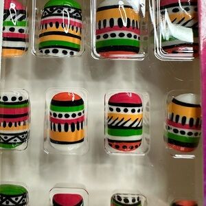 Enhance your style with Fashion Nails. These vibrant, easy-to-apply nails feature a fun multicolor design, perfect for any occasion.
