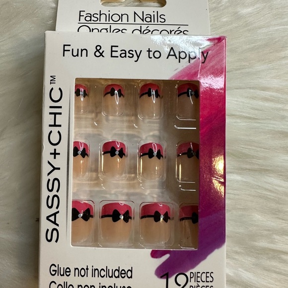 Enhance your style with Fashion Nails. These pink and black nails are fun and easy to apply, perfect for a quick and stylish look.
